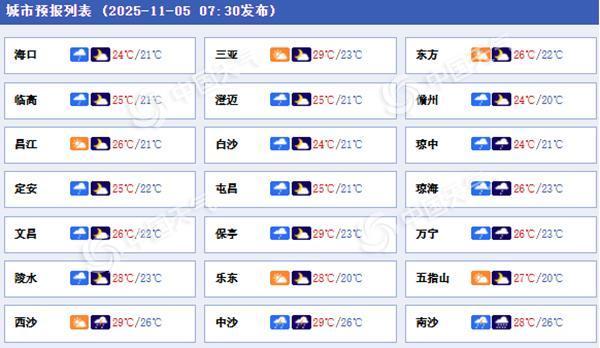 海南各地今日天气预报。(来源:中国天气网)