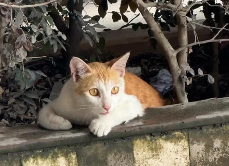 另一个小姐姐,经常在小区楼下投喂一只流浪大橘,一人一猫相处得十分愉快。