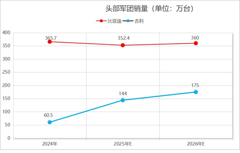 头部军团要说目前能够跻身头部的,也就只有比亚迪和吉利两大民营汽车巨头了,因为只有他们两家的销量能够突破100万辆。